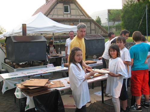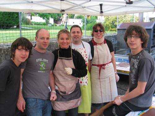 Pendant que les parents s’affairaient à la préparation des tartes flambées ou au stand de boissons et de pâtisseries, leurs enfants aidés par des amis s’occupaient consciencieusement du service avec le sourire.