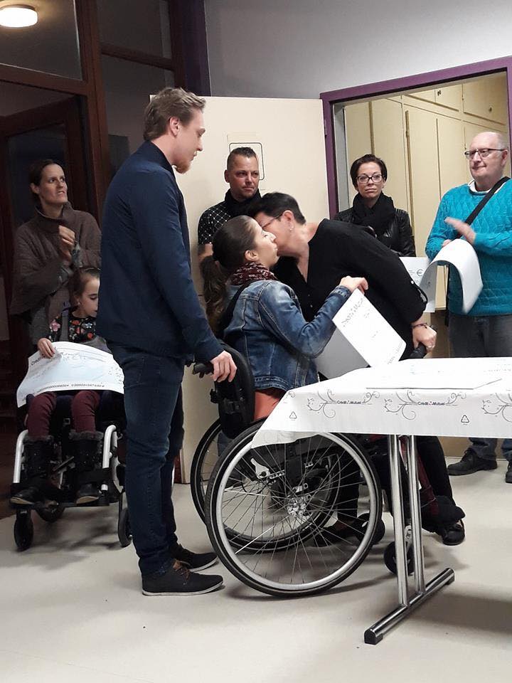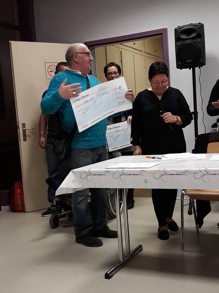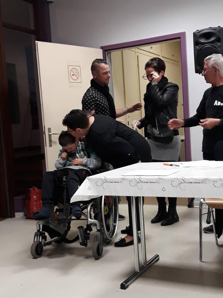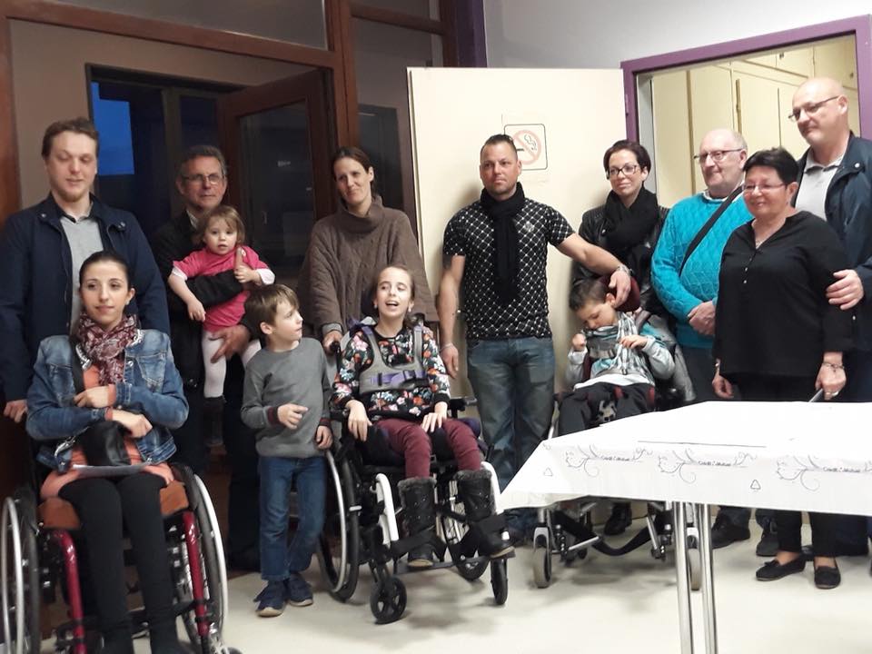 Enzo, 8 ans, en fauteuil roulant, venu avec ses parents Amandine et Benoît, pourra désormais faire des balades en famille grâce à ce don, pour l’acquisition de roller se fixant à un vélo. La jeune Léa, 12 ans, aussi en fauteuil, était accompagnée, de ses grands-parents Michel et Marie-Claire, de son frère Thibaud et d’Emilia sa sÅ“ur, qui s’occupent beaucoup d’elle, ainsi que de Samantha, sa maman qui a déclaré « Léa travaille bien à l’école, elle est en 6e et bénéficie de l’aide précieuse d’une A.V.S ». Et d’ajouter : « elle doit se faire opérer à Barcelone et ce chèque va bien nous aider ». Bernard n’a pas pu emmener Josiane, 62 ans, son épouse, qui a beaucoup de difficultés pour se déplacer, ce don représente une participation à l’achat d’un fauteuil électrique. Quant à Cynthia, 23 ans, c’est d’un monte-escalier dont elle a besoin rapidement. Christophe, son compagnon, confirme son souhait. À son chèque de 2000€ s’est rajouté un autre de 1 000 € de l’association Mobilis représentée par Thierry Welsch. Le club des aînés Bel Age de Gougenheim a voulu aussi faire un beau geste en remettant un don conséquent à l’association Damien Handicap.