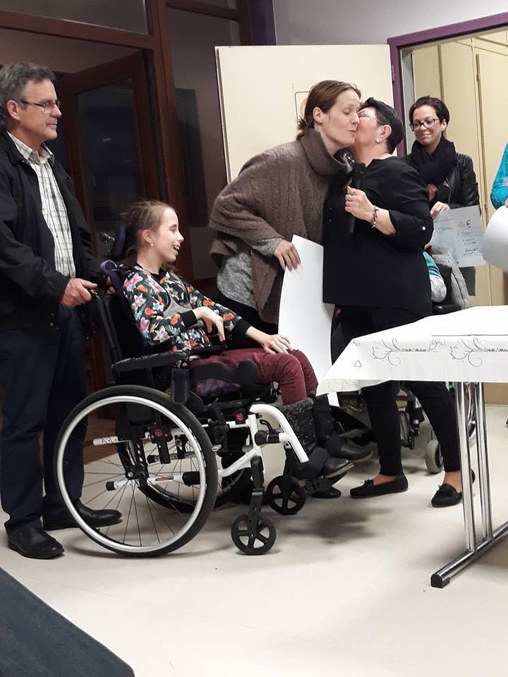 En présence d’associations en lien avec le handicap, des maires de Durningen et Kienheim, Gabrielle Fiacre et Luc Ginsz, et de nombreux sympathisants, Fabienne Arenz, a ouvert la cérémonie de remise de dons au groupe scolaire. Très émue, elle a remercié Francis, son époux, pour son soutien plus qu’indispensable, avant d’appeler les bénéficiaires des quatre chèques de 2 000 € et d’un chèque de 2 070 €. Ce dernier don destiné au petit Amine de Lingolsheim, qui n’a pas pu être présent, va lui être adressé par courrier, il servira au capitonnage d’un lit médicalisé.