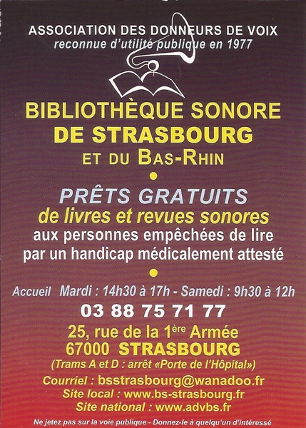 Accueil > Vivre à Kienheim > Vie pratique > Age d’Or > Bibliothèque sonore de Strasbourg