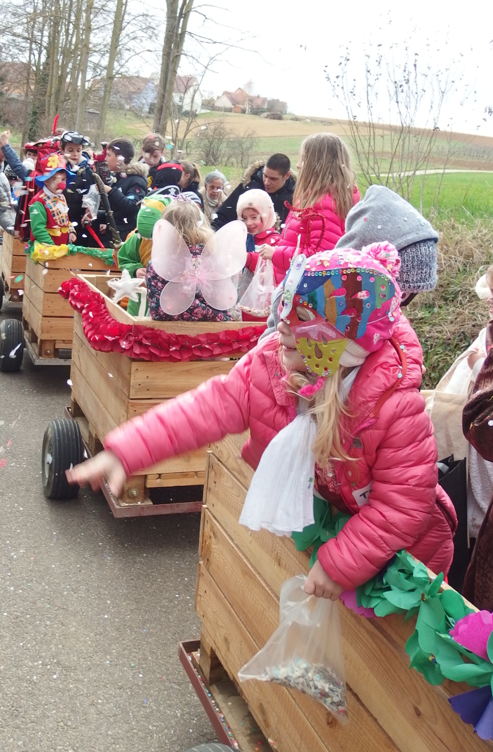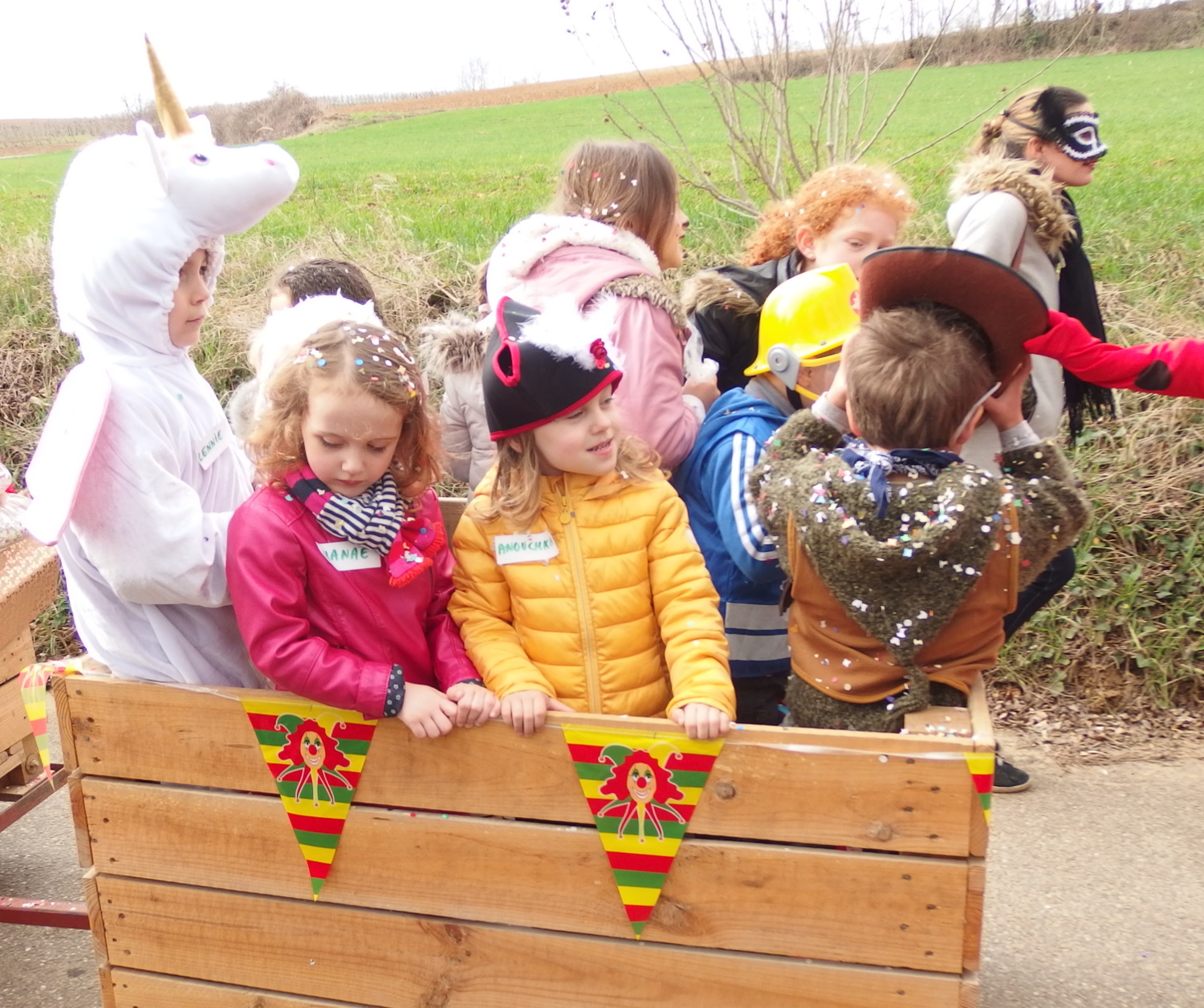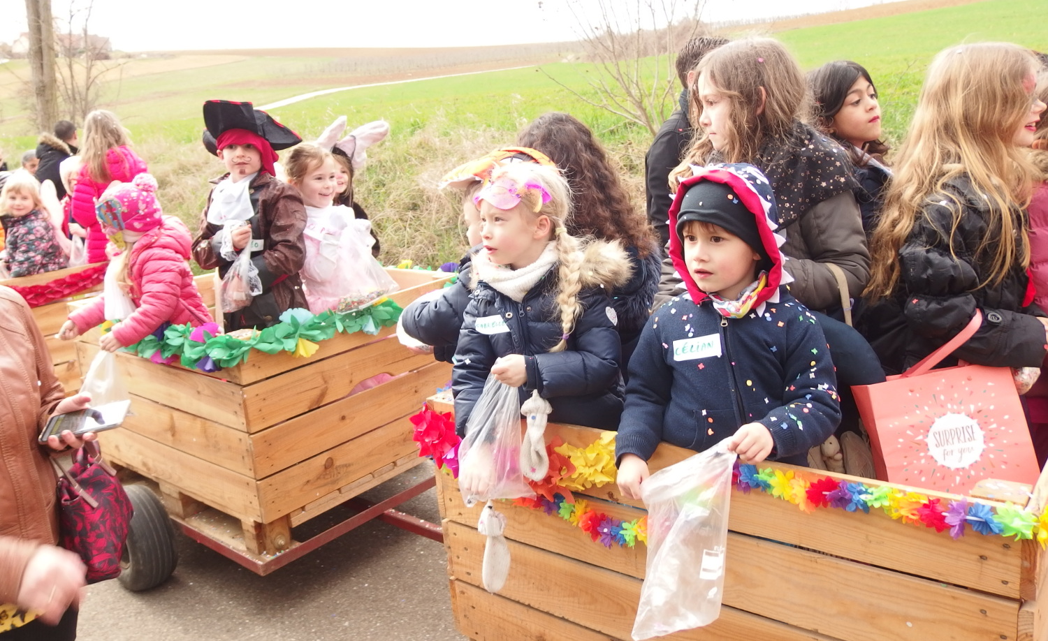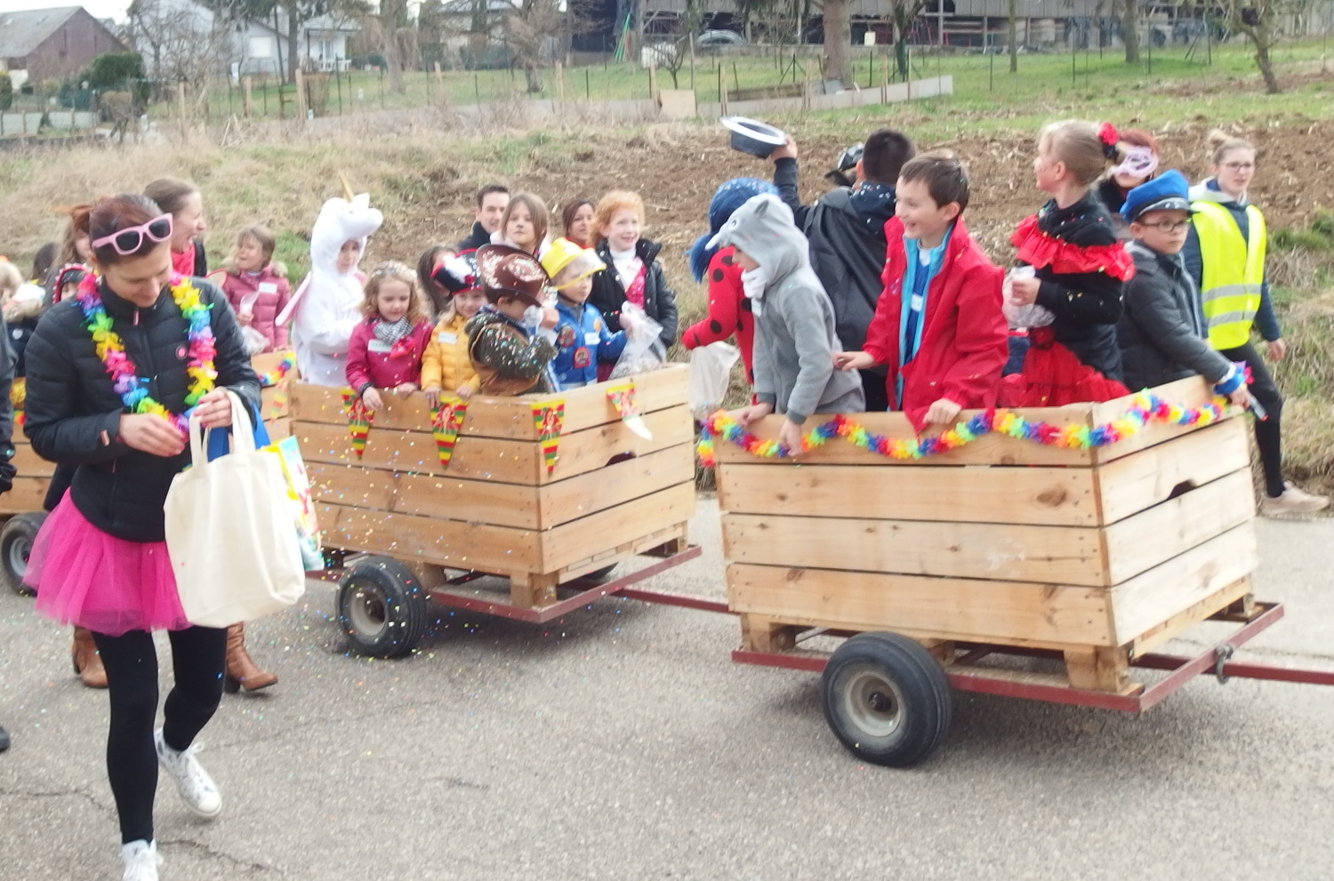 " Une soixantaine d’enfants, vêtus de magnifiques costumes, attendaient avec impatience dans la cour de l’école de Durningen-Kienheim le signal pour monter dans les wagonnets et partir à la chasse aux bonbons.