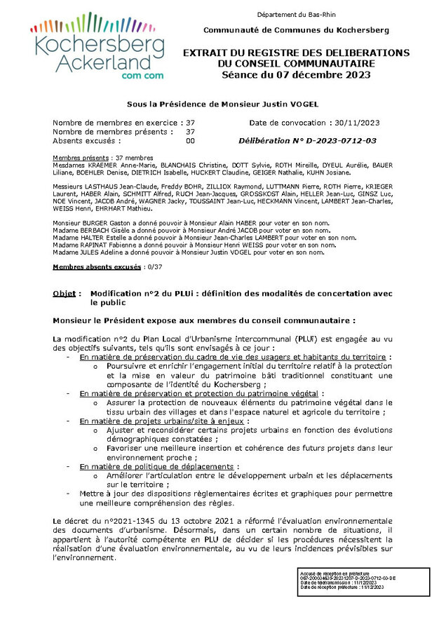 Accueil > Mairie > PLUi - Plan Local d’Urbanisme intercommunal > Délibération du conseil communautaire décidant de soumettre à évaluation (…)