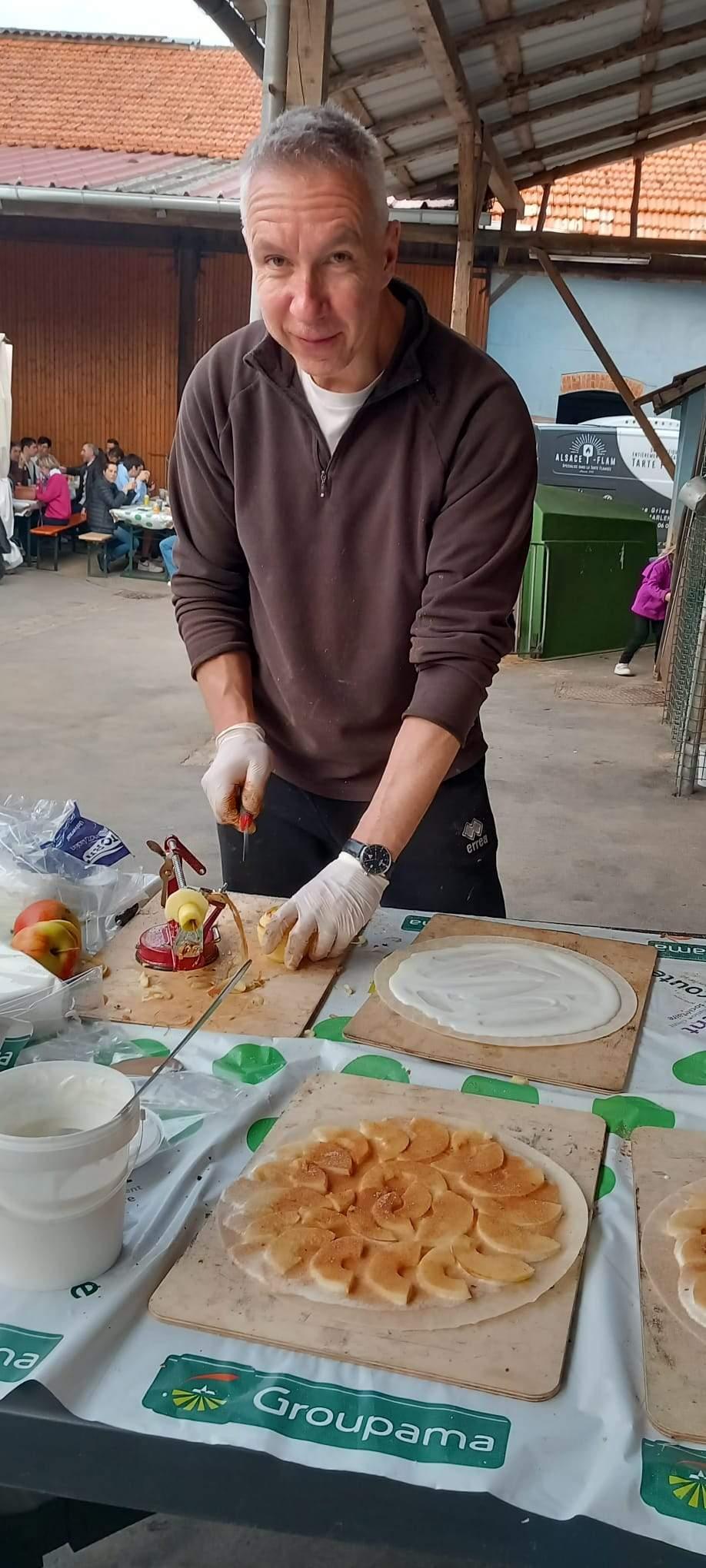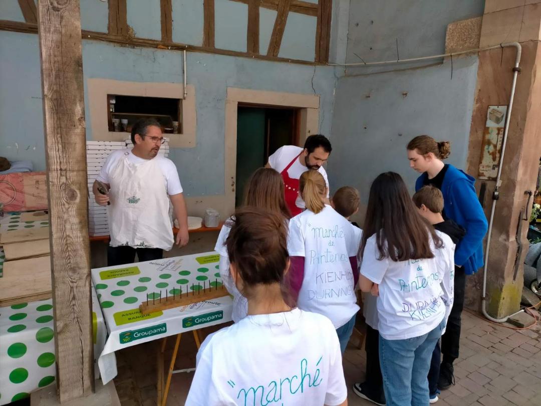 Alors que le comité animation de la commune, présidé par Lucie Dierstein, avait en charge l’organisation du marché, la recherche d’exposants et leur installation, l’association socioculturelle et sportive de Durningen Kienheim (ASCSDK), présidée par Estelle Foucher, était préposée à la restauration dans la cour de la ferme Knab, proposant midi et soir de succulentes tartes flambées et un panel de gâteaux.