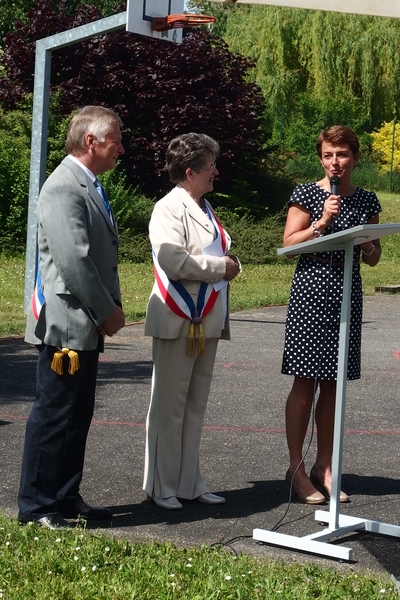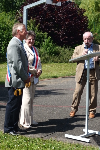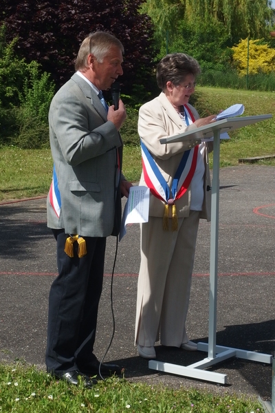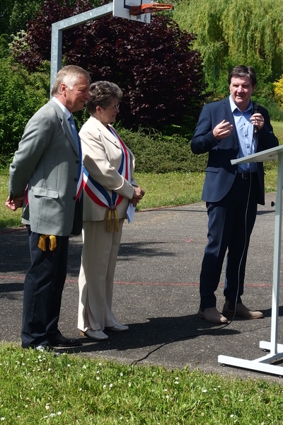 Gabrielle Fiacre et Luc Ginsz ont tout d’abord résumé lors d’un discours commun l’histoire de cette aire multi-sports : Les deux municipalités ayant initialement chacune le même projet, il leur avait paru très rapidement évident de mutualiser leurs moyens financiers. L’emplacement avait ensuite été logiquement choisi : sur le ban de Durningen, mais juste à la sortie de Kienheim, au-dessus de l’école.