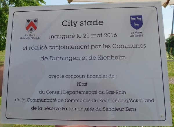 Samedi 21 mai s’est déroulée l’inauguration du city-stade, projet commun des communes de Durningen et Kienheim. De nombreux jeunes et leurs parents, conseillers municipaux, maires des villages des alentours et représentants des collectivités locales s’étaient déplacés pour l’occasion sur l’invitation des deux maires.