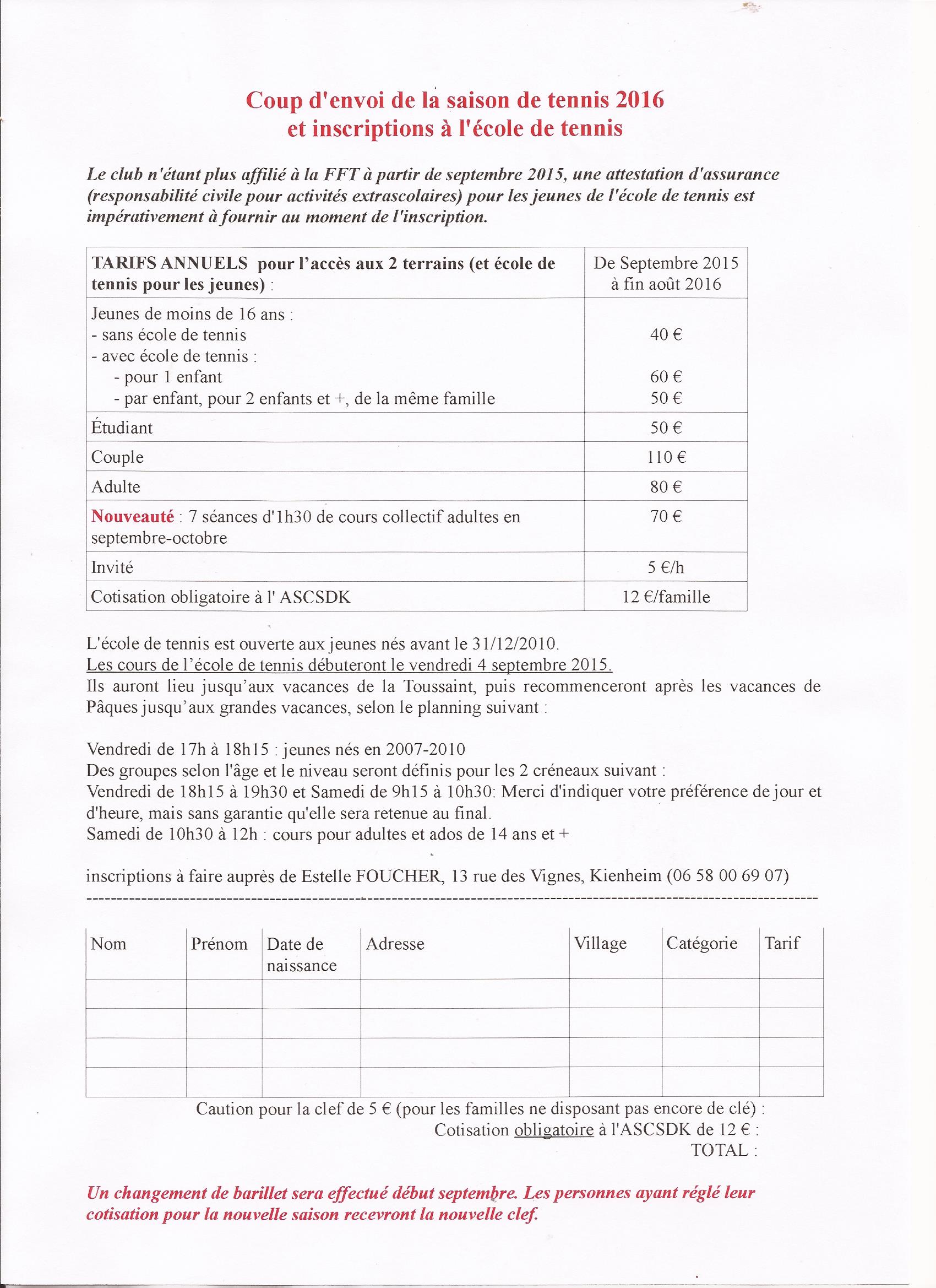 Accueil > Vivre à Kienheim > Vie associative > ASCSDK > Archives > Année 2015 > Lancement de la saison de tennis 2016