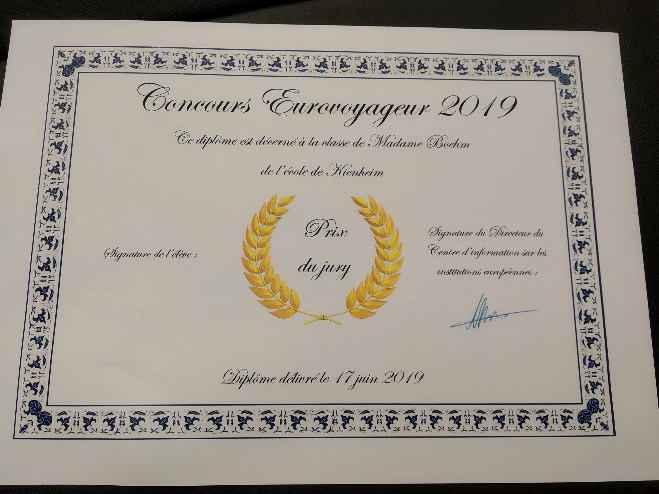 La classe des CM1-CM2 de Mme BOEHM a participé, à la suite d’une animation « eurovoyageur » présentée par Claude ENGELN (habitant Kienheim) du CIIE (Centre d’Information sur les Institutions Européennes), à un concours photo courant des mois d’avril et de mai.