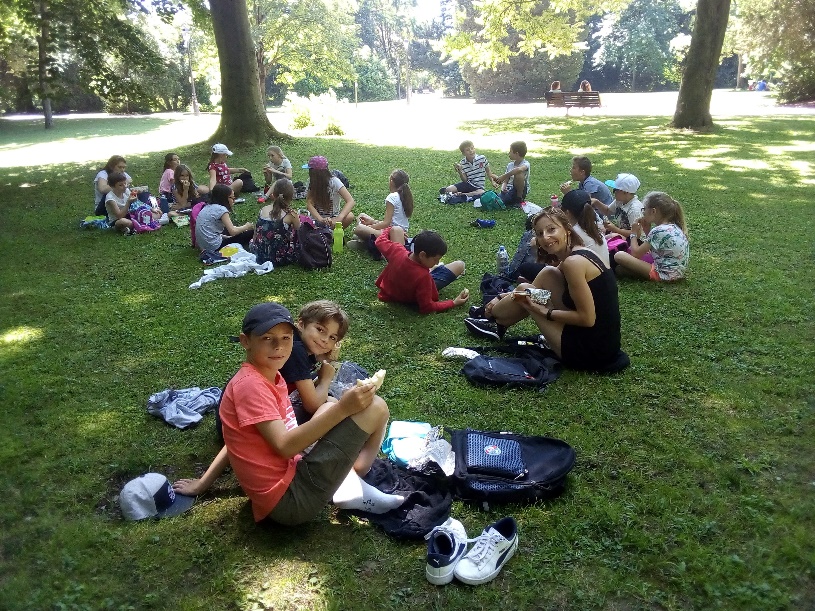 Après de belles prises de photos souvenirs devant les drapeaux des nations membres et à l’entrée du parlement, la classe a quitté le site pour aller pique-niquer au parc de l’Orangerie.