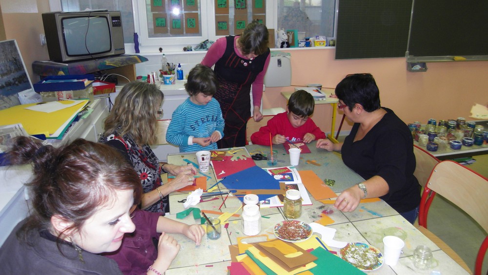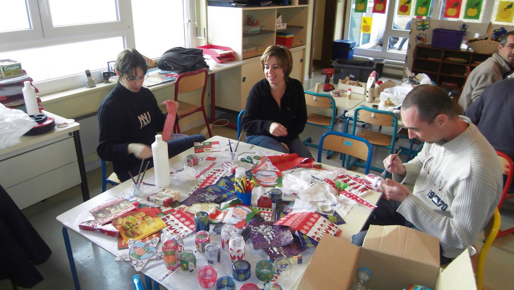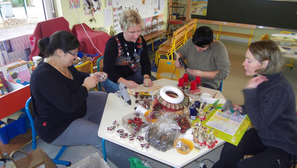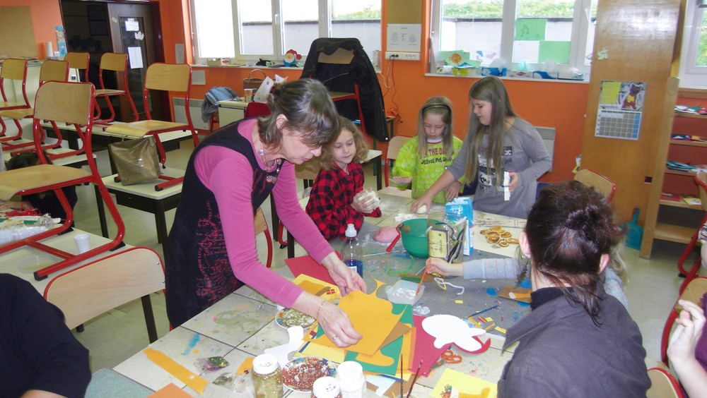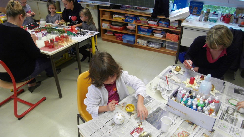 Nos classes travaillent d’arrache-pied tous les samedis matins depuis la rentrée des vacances de Toussaint. Les enfants fabriquent, collent, découpent… sous l’Å“il vigilant des parents et des enseignantes.