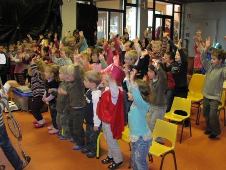 Les enfants étaient très enthousiastes et ont bien participé en chantant, dansant et en se déguisant.