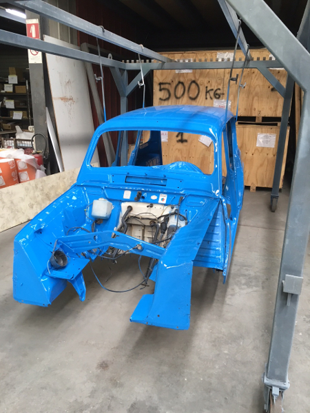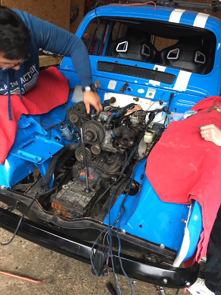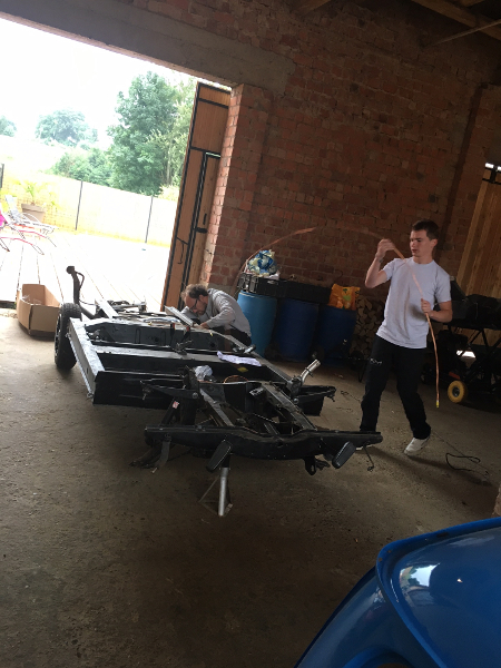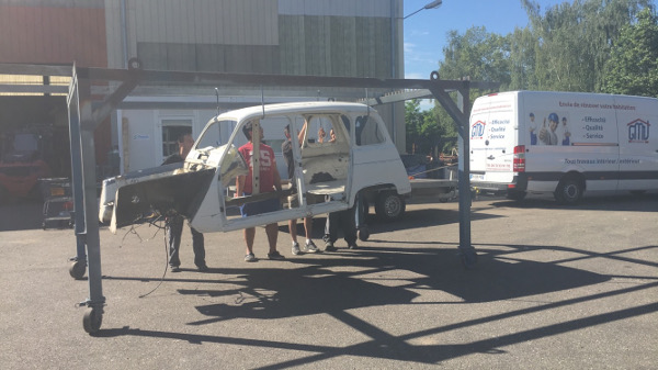 Notre châssis était bien abîmé, par conséquent nous avons décidé de le changer, nous avons démonté la caisse. Dans ce même temps, notre moteur est parti en révision et notre caisse se faire peindre. Après avoir effectué tout cela, notre voiture a été remontée.