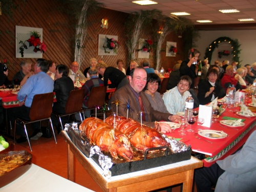 Puis le moment fut venu de partager les succulents cochons de lait copieusement préparés par Jeannot connu de tous et de se laisser tenter par les desserts et bredele soigneusement confectionnés par M. Wiand.