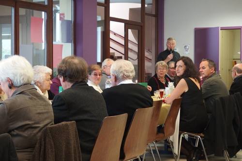 Près de 70 personnes se sont donc retrouvées dans la salle polyvalente de l’école autour du maire et de quelques conseillers municipaux. Après un discours de Luc Ginsz, elles ont pu savourer des noix de Saint Jacques juste poêlées accompagnées de tagliatelles de légumes et de riz, puis de la gigue de chevreuil sauce grand veneur avec des spaetzle.