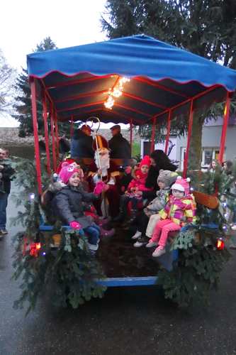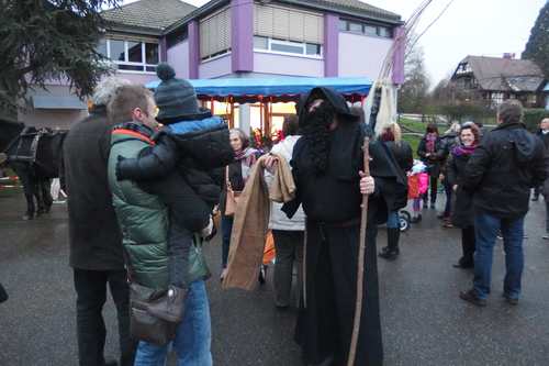 Samedi 6 décembre 2014, les enfants de Kienheim et Durningen s’étaient rassemblés dans la cour de leur école. Ils attendaient Saint Nicolas qui, leur avait-on dit, était de passage à Kienheim... Et en effet, il arriva dans sa calèche... Mais pas seul malheureusement, car le Père Fouettard lui aussi était là et interrogeait les enfants craintifs, qui tenaient fort la main de leur maman ou se serraient dans les bras de leur papa, pour savoir s’ils avaient été sages...