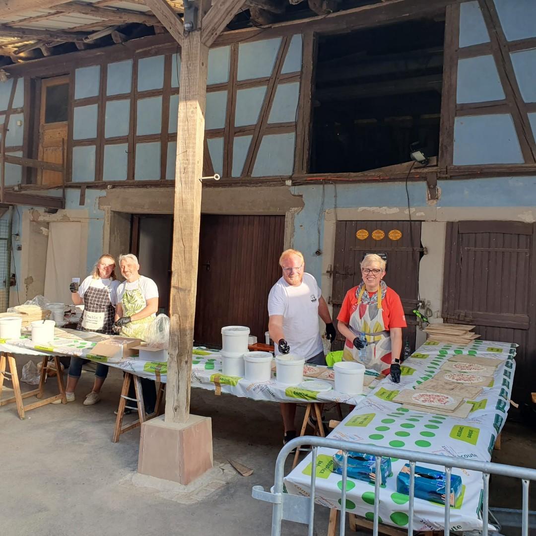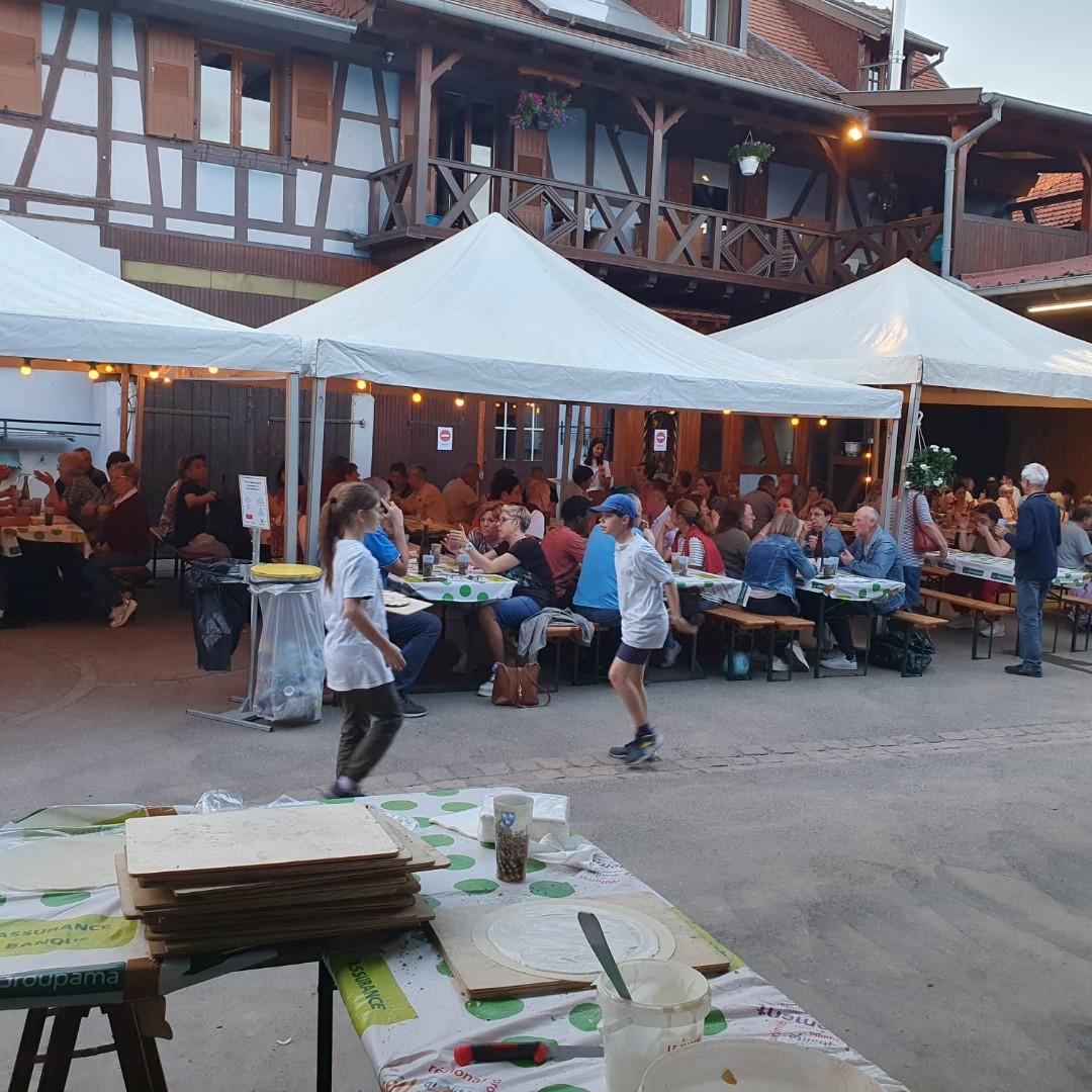 Dix familles et six jeunes bénévoles du village ont aidé Estelle Foucher, présidente de l’association socioculturelle et sportive de Durningen-Kieheim (ASCSDK), au bar, au stand gâteaux et à la tarte flambée. La ferme a dû pousser les murs pour installer un espace restauration supplémentaire et répondre ainsi à l’affluence du midi et du soir.